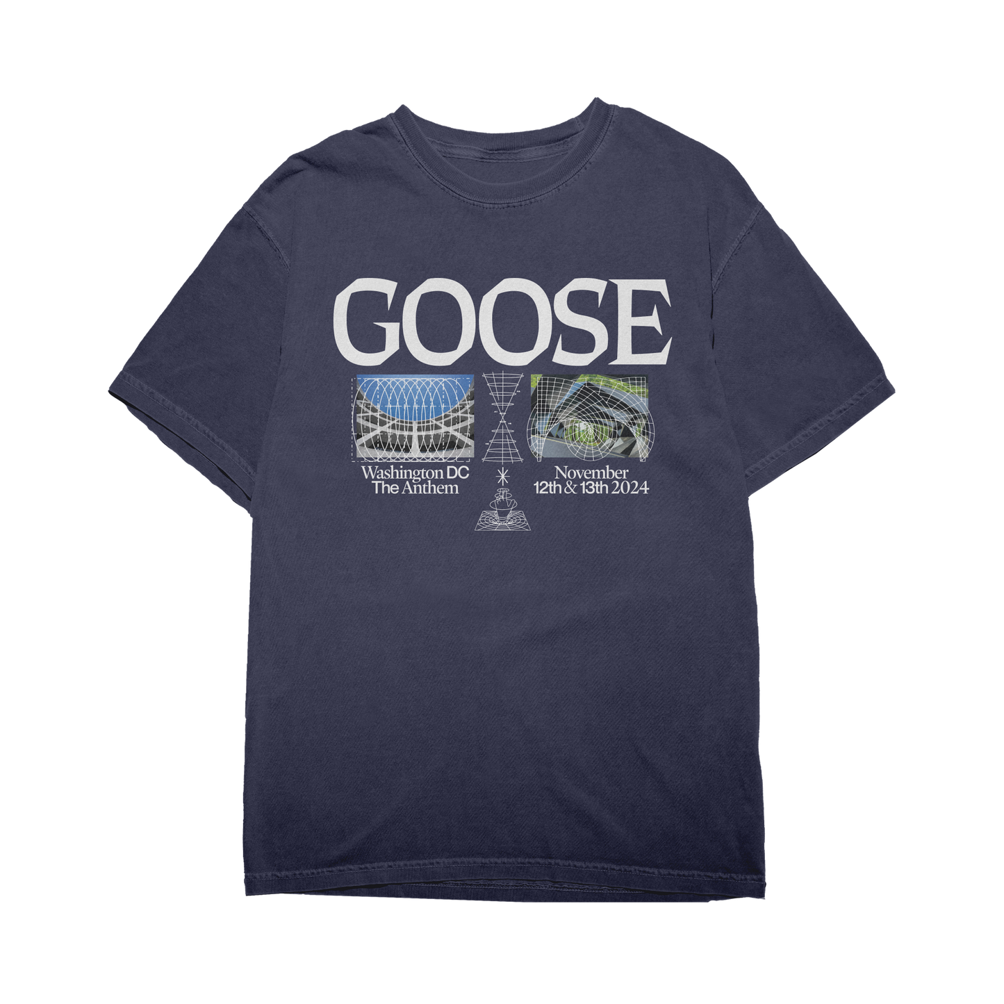 100 percent cotton black tee featuring the Washington D.C. show artwork from Goose’s East-coast run in November 2024.